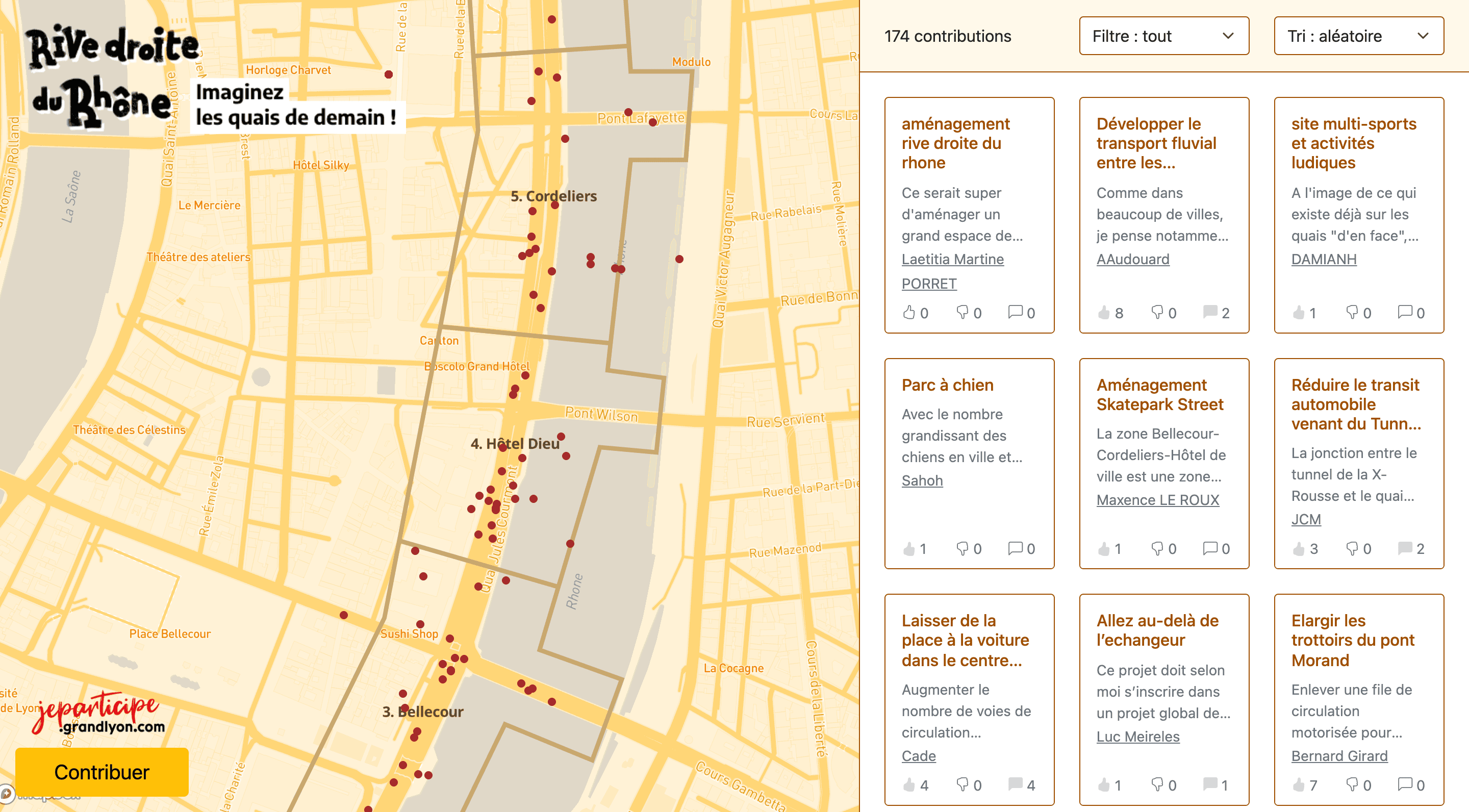 Valoriser les contributions citoyennes déposées sur la plateforme participative jeparticipe.grandlyon.com dans le cadre de la concertation sur l’avenir de la rive droite du Rhône, et permettre leur appropriation par un large public.