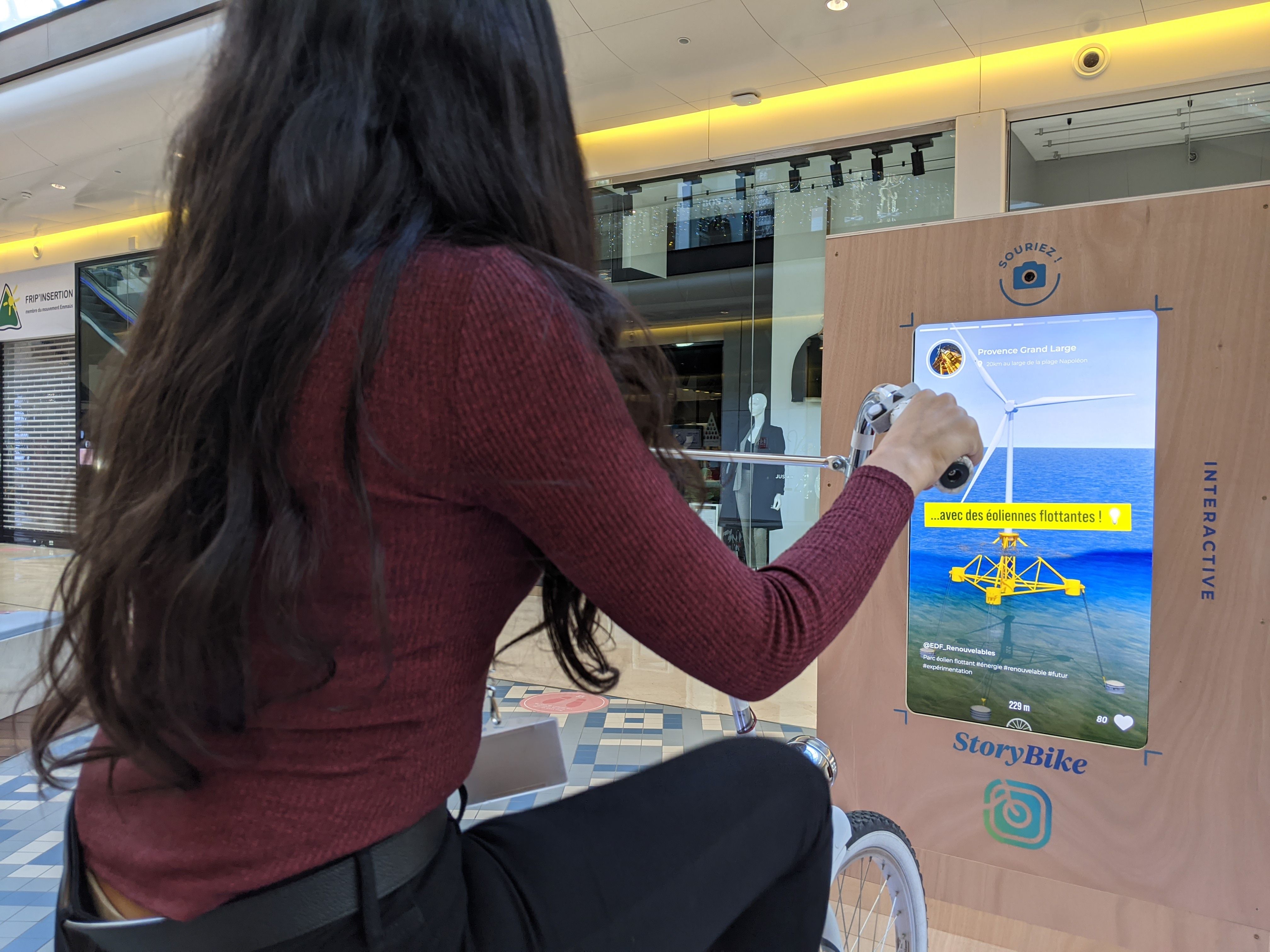 Storybike est un dispositif interactif basé sur un vélo stationnaire, qui permet de découvrir des “stories” présentant les projets écoresponsables du Smartport marseillais.