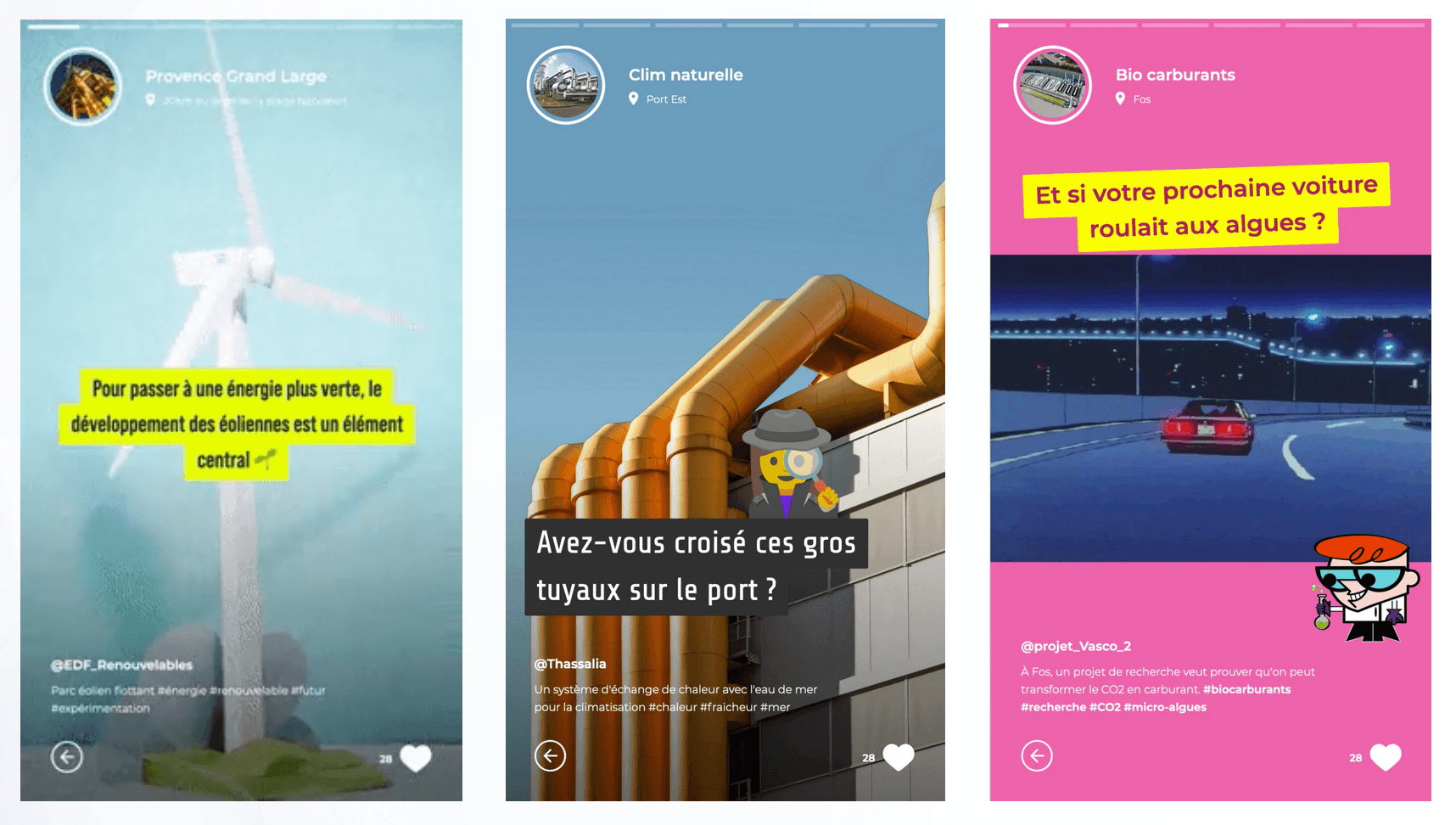 - Chaque story présente un projet écologique local, illustré de façon simple et attrayante