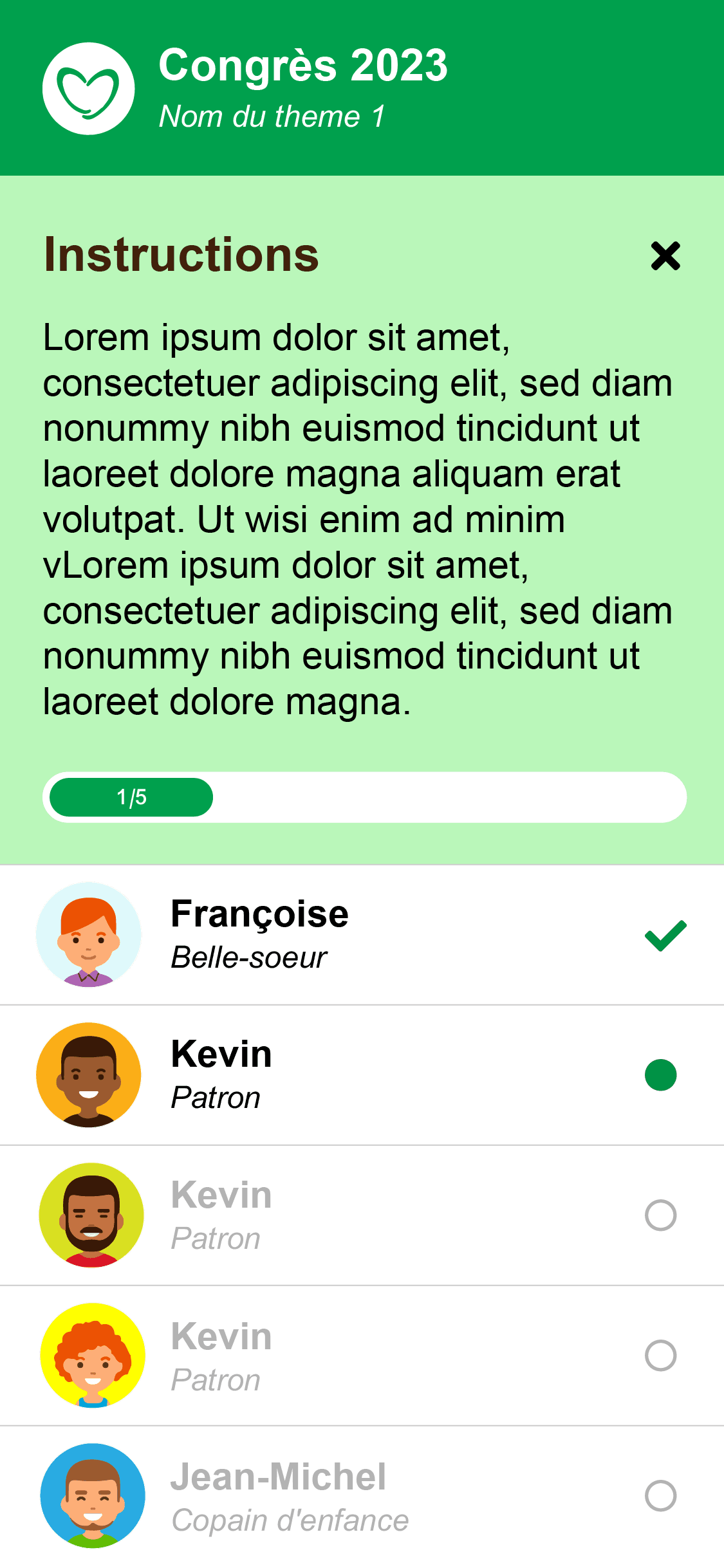 Répartis en équipes de 5 à 6 personnes, les participant·es reçoivent des messages de ‘proches’ diffusant des informations médicales douteuses. Leur mission : discuter en équipe de la meilleure manière de répondre, avec tact et pédagogie, puis envoyer un message de réponse.